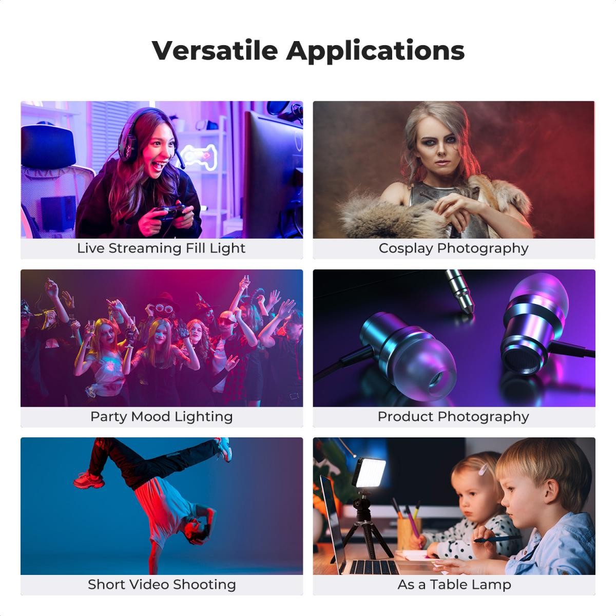 K&F CONCEPT 12W RGB Photography Fill Light je prijenosno svjetlo za kameru s baterijom od 5000 mAh i 360° LED panelom u punoj boji (2700-7500K, CRI 95+). Idealno je za snimanje na YouTubeu ili vlogging, na primjer.
