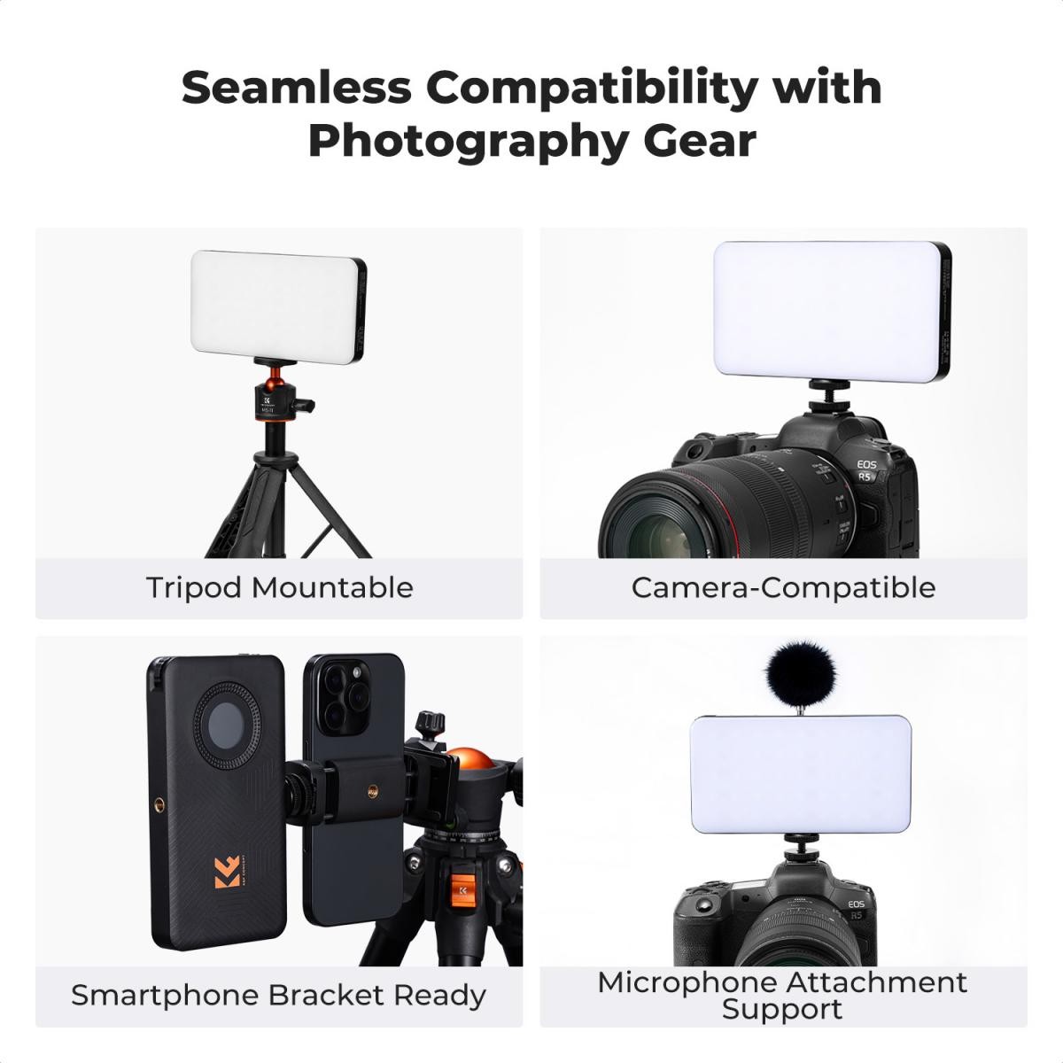 S dimenzijama od samo 15 x 8 x 1,8 cm i težinom od samo 193 g (usporedivo s iPhoneom 16 Pro), lako se nosi u bilo kojoj torbi. Ugrađeni LCD zaslon u boji , fizičke tipke i rotacijske kontrole osiguravaju precizno i intuitivno upravljanje - idealno profesionalno svjetlo za vlogere na putovanjima i mobilne kreatore.