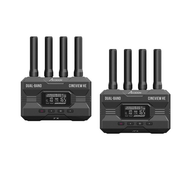 Accsoon CineView HE je HDMI dvopojasni bežični odašiljač i prijemnik za kameru dugog dometa s novim USB-C priključkom na prijemniku za izravno strujanje uživo (UVC). Prenosi HD video i HQ zvuk na do 4 uređaja (svoj prijemnik, mobilni telefon, iPad, pa čak i MacBook s najnovijim M1 čipom) putem Accsoon-ove jedinstveno patentirane dvopojasne (2,4 GHz + 5 GHz) tehnologije prijenosa. Potpuno novi USB-C priključak na prijemniku pružit će kreatorima, streamerima uživo i podcasterima puno više snage za prikazivanje njihovog rada ili života putem strujanja uživo.