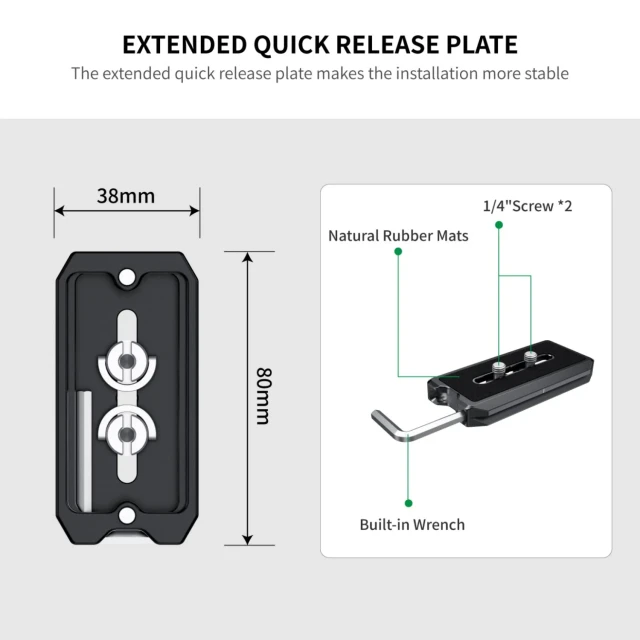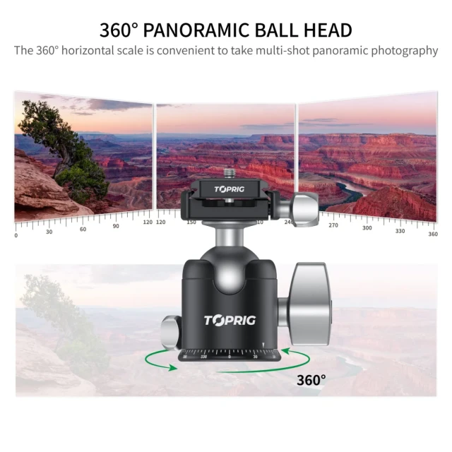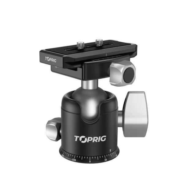 Opremljena preciznom kuglom od 36 mm, kuglasta glava TopRig omogućuje fluidno podešavanje kuta i panoramsku rotaciju od 360°, što omogućuje besprijekorno snimanje pejzaža, portreta i panorama. Promjer baze od 51 mm poboljšava stabilnost, dok integrirana ploča za brzo otpuštanje od 1/4” osigurava brzo postavljanje i uklanjanje fotoaparata.