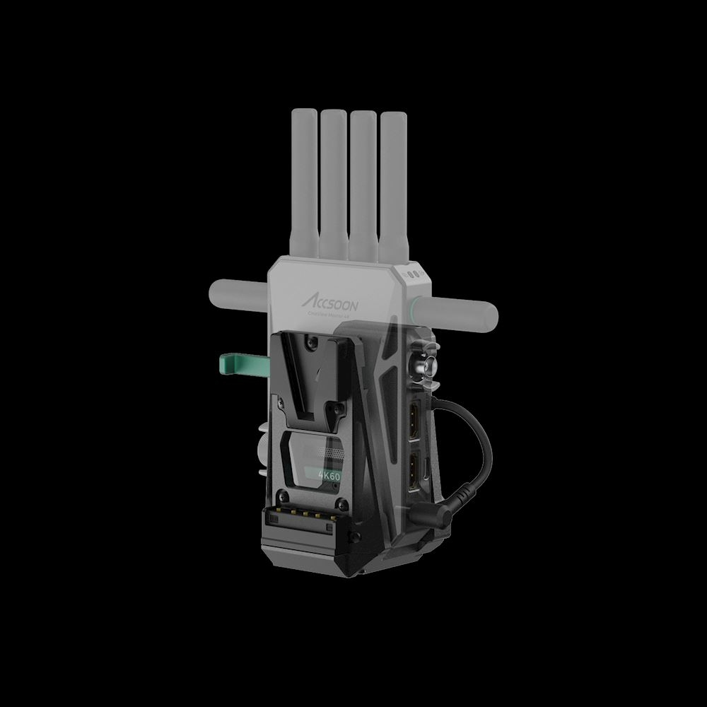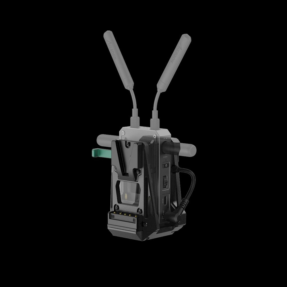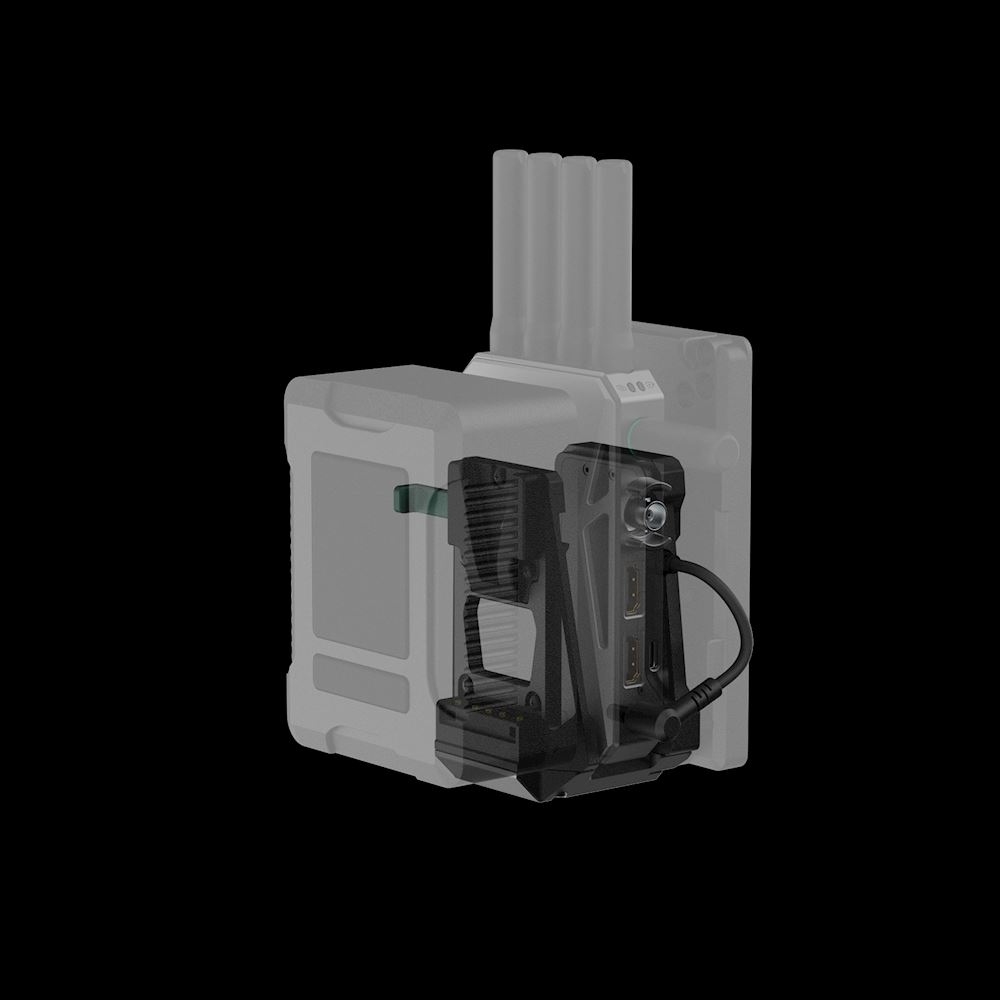 Nakon instalacije, adapter sigurno drži CineView odašiljač i napaja ga putem kratkog DC kabela, dok se napajanje iz V-mount baterije prenosi na kameru. Ovaj integrirani dizajn poboljšava ergonomiju, ravnotežu i rukovanje, što ga čini idealnim za ENG kamere, kamere bez zrcala s V-lock adapterskim pločama i profesionalne sustave kamera koji su već opremljeni V-mount pločama.