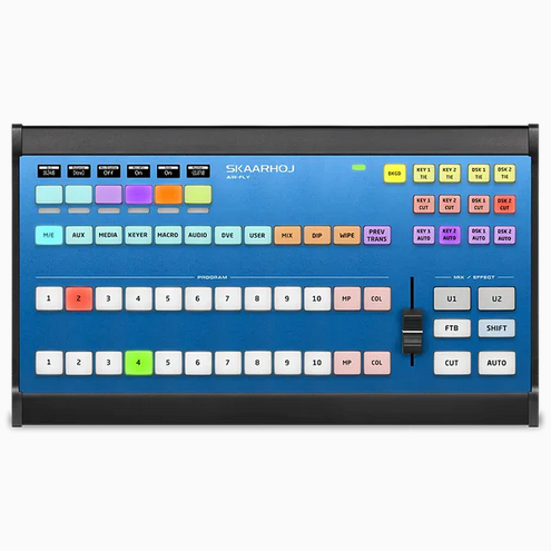 Savršen izbor gdje je cijena bitna, ali treba sačuvati kvalitetu SKAARHOJA. Namjenski program/pregled, jasno označeni izbornici i pomoćni gumbi. Izdržljivi fader za održavanje prijelaza vrhunskim. Air Fly je dostupan s 3 različita izgleda naljepnica – za ATEM, za vMix i za TriCaster; koristeći imenovanje specifično za sustav za svaki.