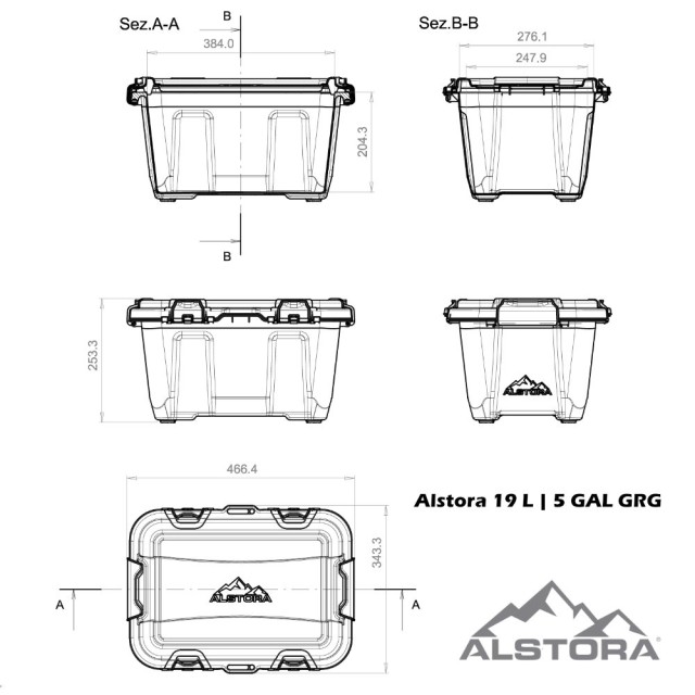 Alstora posude se mogu slagati na jedan i štede prostor : ulijeću se jedna u drugu kada su prazne; kada su puni, mogu se složiti za uredno i funkcionalno skladištenje. Integrirani prorezi u poklopcu i u podnožju namijenjeni su za pričvršćivanje traka za pričvršćivanje, lokota i/ili pečata.