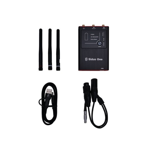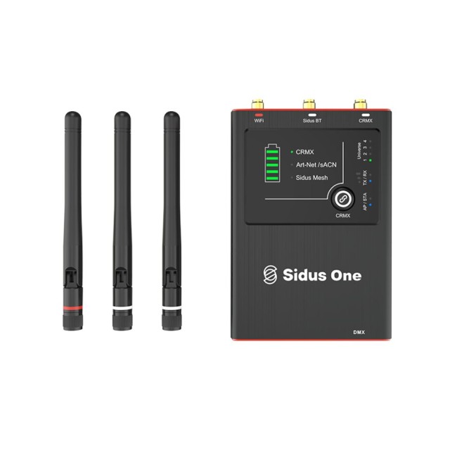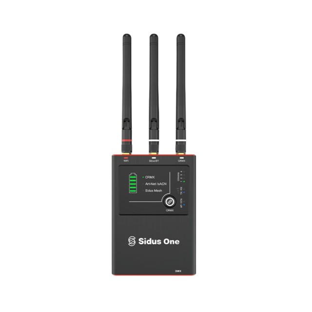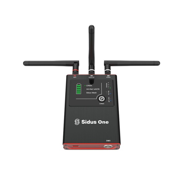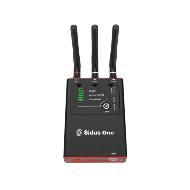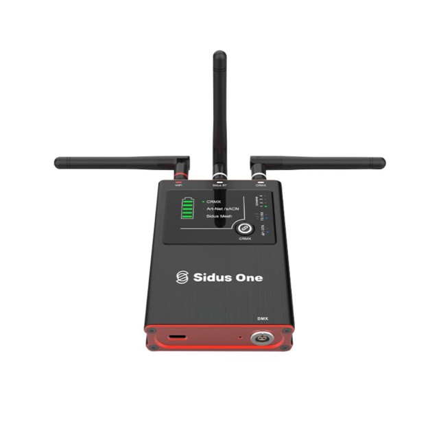 DMX , CRMX , sACN , Art-Net , Bluetooth Mesh – sve mogućnosti povezivanja koje trebate u jednoj maloj kutiji za punjenje. Sidus One povezuje se s bilo kojom aplikacijom za rasvjetu i optimiziran je za Sidus Link Pro . Sidus One odašilje DMX i CRMX i može primati DMX, CRMX, Art-Net i sACN. Alternativno, Sidus One se može koristiti kao moćni Sidus Bluetooth Mesh Master Node u Sidus Linku.
