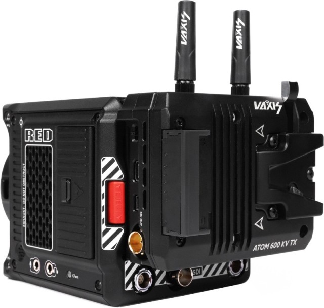 Komplet bežičnog odašiljača i prijemnika Vaxis ATOM 600 KV dizajniran je za bežični video prijenos do 1080p60, idealan za nadzor kamere RED KOMODO. Omogućuje prijenos videa s latencijom manjom od 80 ms na udaljenosti do 180 m u vidnom polju.