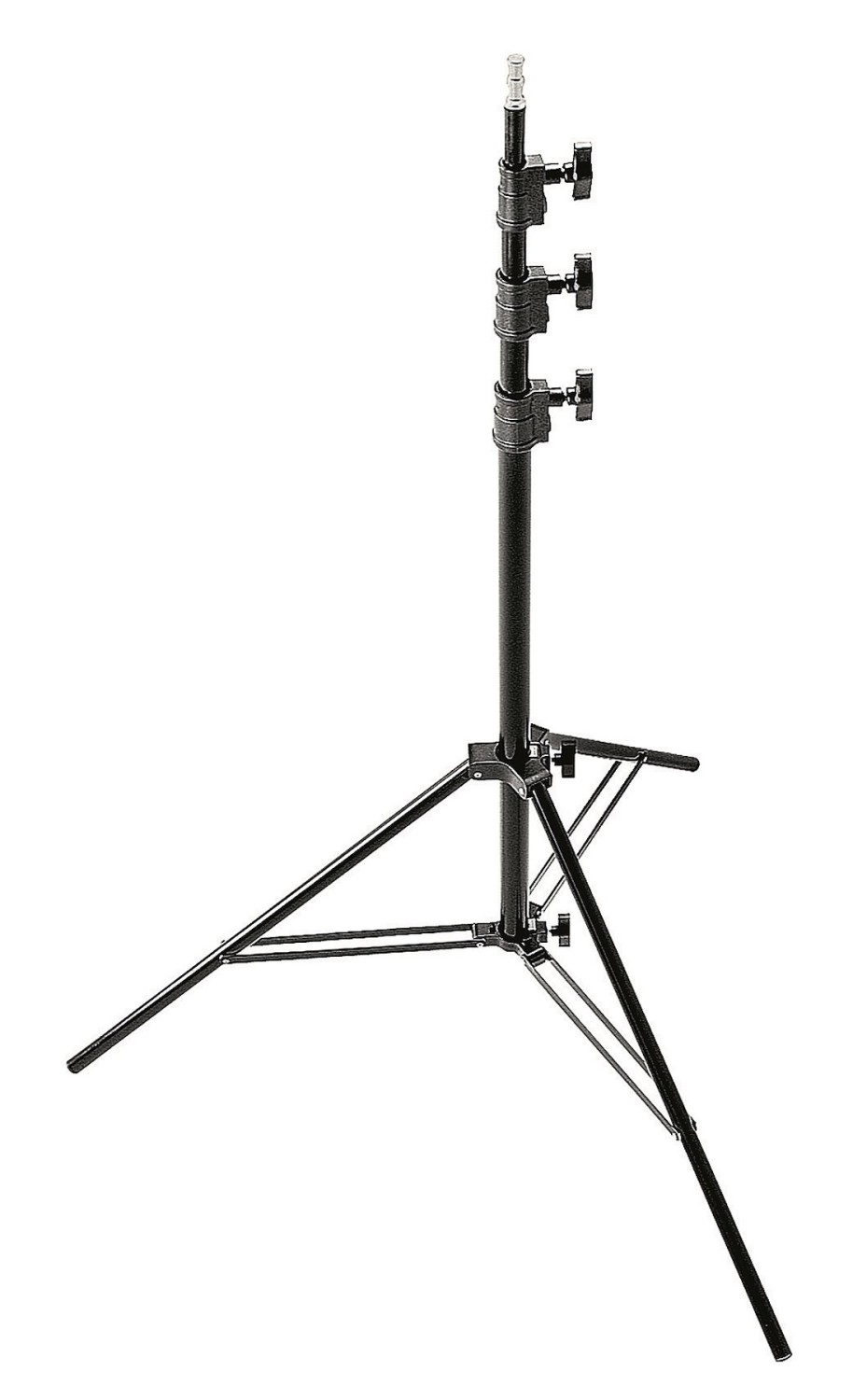 Stalak se proteže do maksimalne visine od 3,79 m (12,6') i kompaktno se sklapa na 109 cm, što ga čini jednostavnim za transport i pohranu. S promjerom baze od 109 cm, tronožac nudi izvrsnu stabilnost, podržavajući maksimalno opterećenje od 9 kg, pogodno za svjetla, reflektore i ostali pribor. Kompatibilan je s kotačima 110 i 110G za poboljšanu mobilnost na setu.