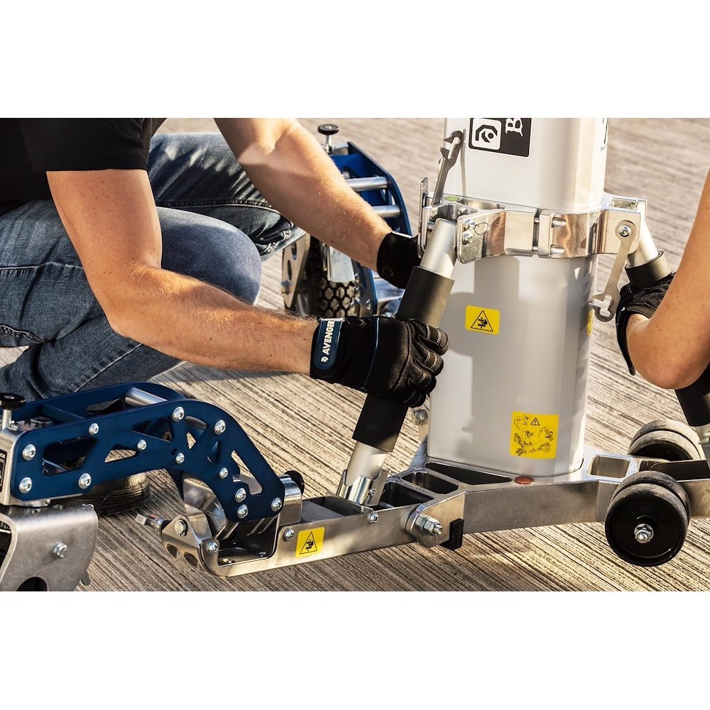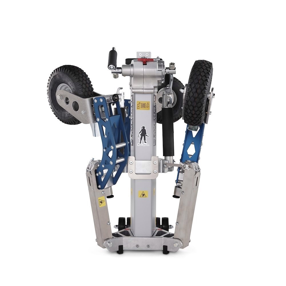 Buccaneer je izgrađen imajući sigurnost korisnika u svojoj srži i ima TÜV, GS i CE certifikate, što osigurava usklađenost s najvišim međunarodnim sigurnosnim standardima. Ima tri podesive nožice za niveliranje za neravan teren, širok otisak od 187 cm za maksimalnu stabilnost i tri kotača s kočnicama, otporna na probijanje i punjena pjenom s višesmjernim zaključavanjem za lako manevriranje - čak i kada je potpuno natovaren. Dodatni praktični detalji uključuju magnetsku ploču za daljinsko montažu, točku za pričvršćivanje utega i transportne kotače s dvostrukim ručkama za lakše premještanje kada je sklopljen.