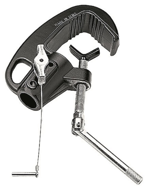 C100 Junior cijevna stezaljka ima ugrađeni prijemnik od 28 mm/1 1/8 inča. Ova gravitacijska stezaljka od lijevanog aluminija, sposobna rukovati svim mlađim klinovima, ima Tommy Bar ručku za zaključavanje i ne zahtijeva nikakav alat pri pričvršćivanju na rešetkaste ili cjevaste rešetke. Ova stezaljka ima nosivost od 250 kg/551,2 lbs, raspon čeljusti je 20 mm - 55 mm/0,78 - 2,16 in ima dodatnu sigurnosnu užad za učvršćivanje juniorskih igala. Preporučeni pribor: C155, E200, C4461-1, C590, C4485, C822, C820, C888UH, C500, C150