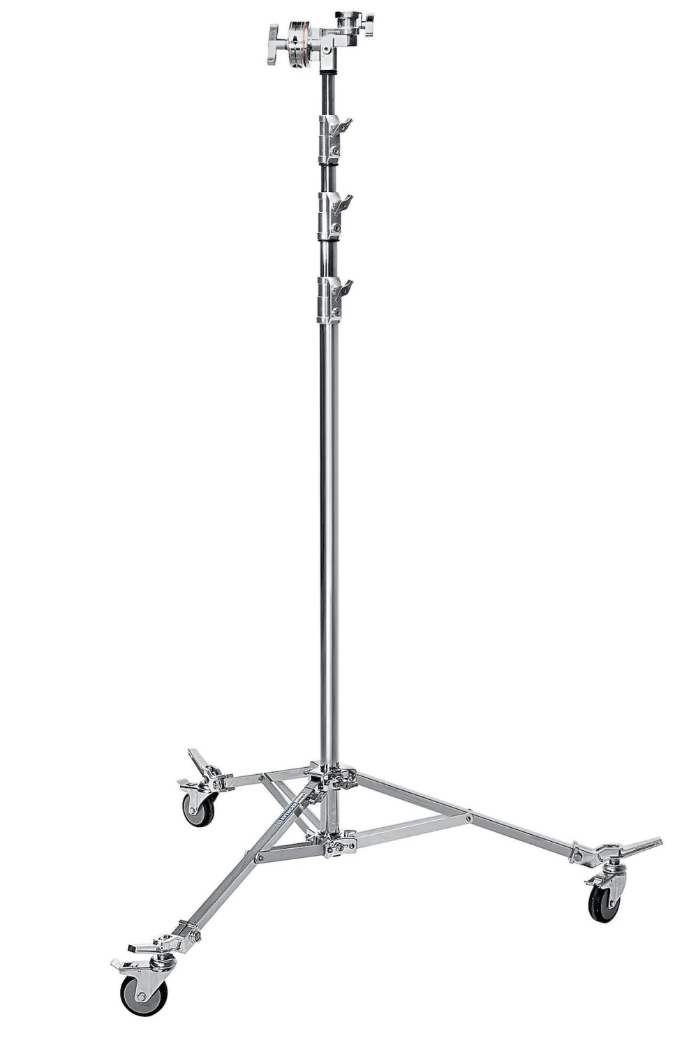 Nadzemni stalak Avenger A3058CS, dimenzija 58 cm, s kotačima s kočnicama, kombinira snagu, stabilnost i mobilnost za profesionalnu fotografiju, snimanje videa i događaje. Njegova kromirana čelična konstrukcija i dizajn s četiri dijela pružaju izdržljivu potporu za cijevi, okvire i drugu opremu, dok maksimalna nosivost od 40 kg osigurava pouzdan rad s teškim armaturama.