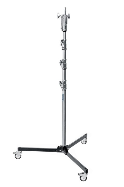 Avenger A5034 stalak na kotačiće 34 s preklopnom bazom je profesionalni mobilni stalak za teške uvjete rada dizajniran za maksimalnu stabilnost i glatku pokretljivost. S čeličnom konstrukcijom od četiri dijela, preklopnom bazom i kotačima, podržava tešku opremu, a istovremeno ga je lako premjestiti na setu.