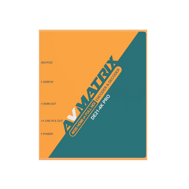 AVMatrix DE21-4K PRO je kompaktan, profesionalni 4K60 HDMI ↔ NDI pretvarač koji donosi pravi NDI pune propusnosti u bilo koji HDMI tijek rada. Podržavajući i NDI|HX i puni NDI (do 250 Mbps), pruža besprijekoran YCbCr 4:2:2 8-bitni video bez primjetnih artefakata kompresije - savršeno za produkciju uživo, IMAG ili studijsku integraciju.