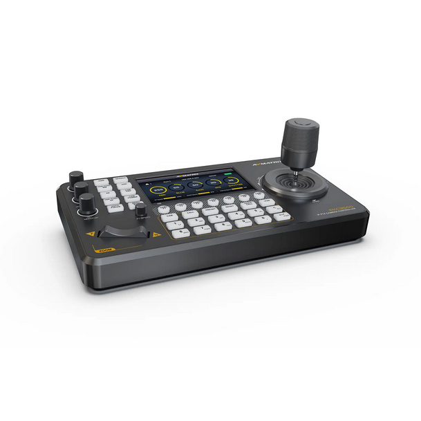 AVMatrix PKC3500 je kompaktan, ali moćan PTZ kontroler dizajniran za produkciju uživo, emitiranje, obrazovanje i bogoslužja. Njegov svijetli 5-inčni zaslon osjetljiv na dodir prikazuje dekodirani video u stvarnom vremenu s do 4 kamere istovremeno, dok precizni 4D joystick i T-bar pružaju glatku, intuitivnu kontrolu panoramiranja/naginjanja/zumiranja/fokusiranja.