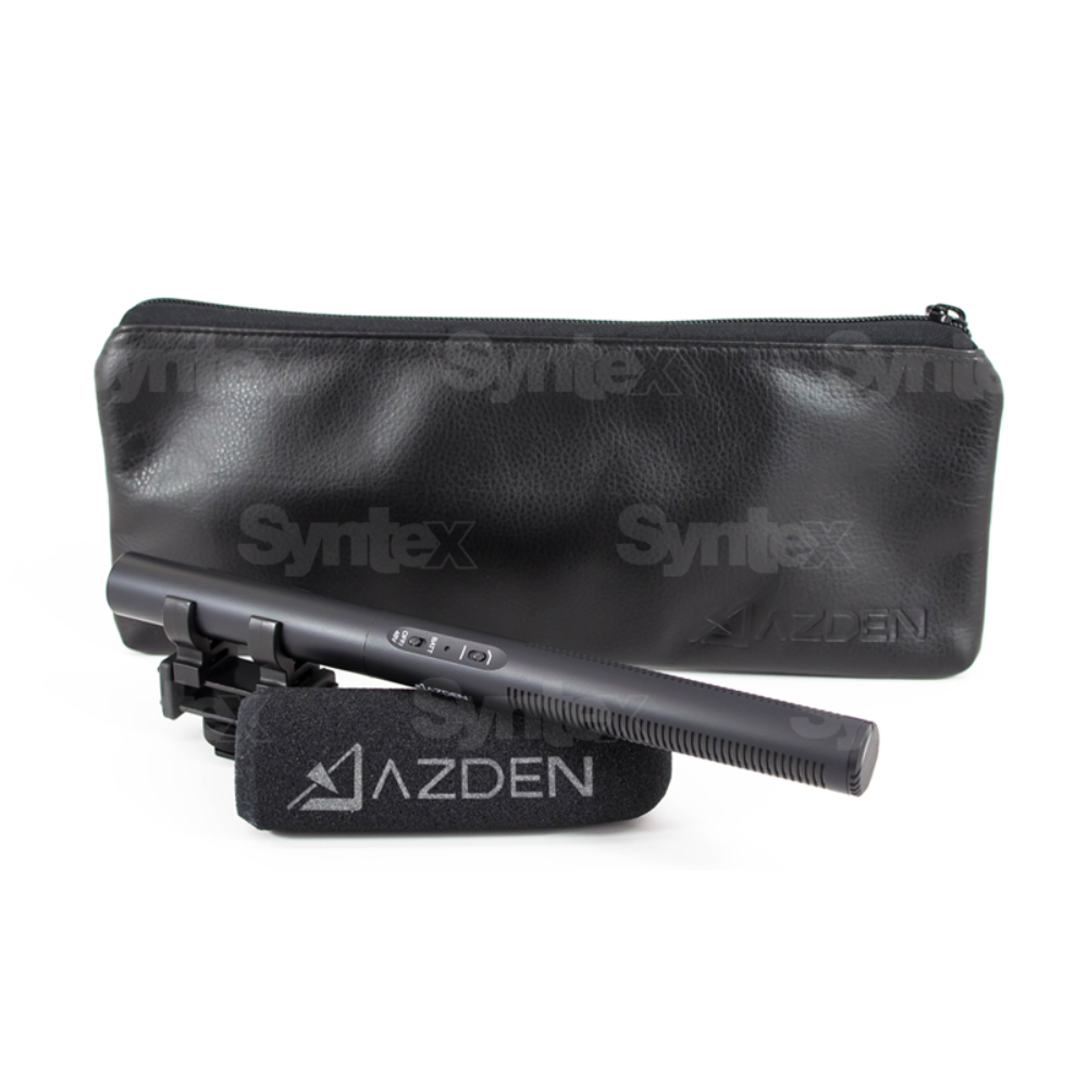 Azden SGM-250 Broadcast mikrofon s dvostrukim napajanjem i XLR izlazom. Uključuje nosač za udarce, navlaku od pjene i torbicu s patentnim zatvaračem.