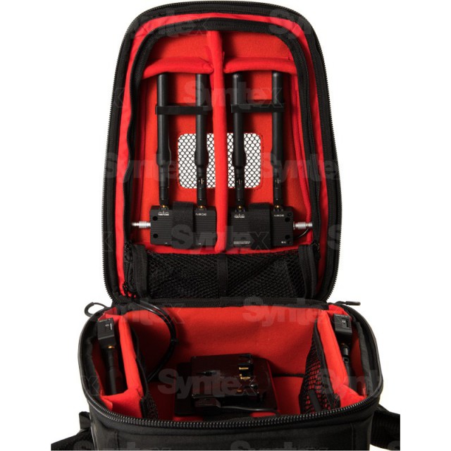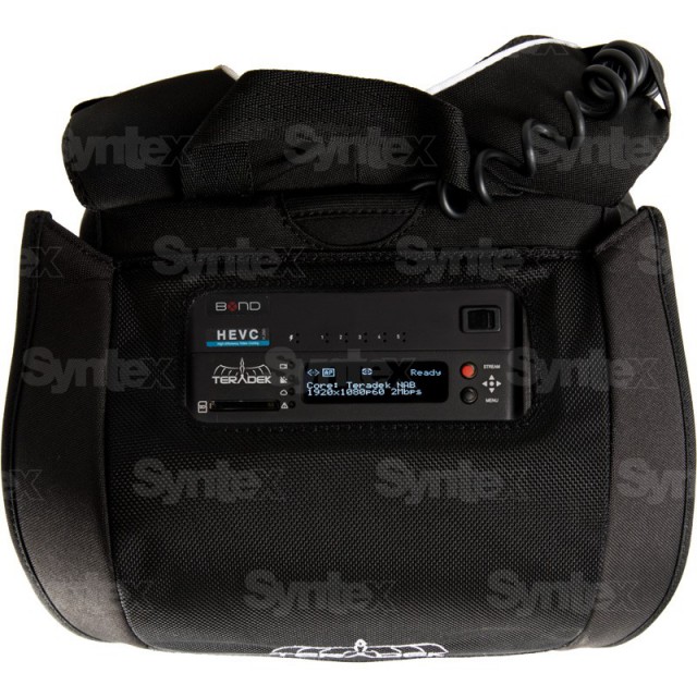 Teradekov Bond 759 HEVC ruksak uključuje Bond 757 modul za proširenje s Cube 755 koderom, Node Cellular 4G LTE USB modem (Europa / Azija) i V-mount ploču.