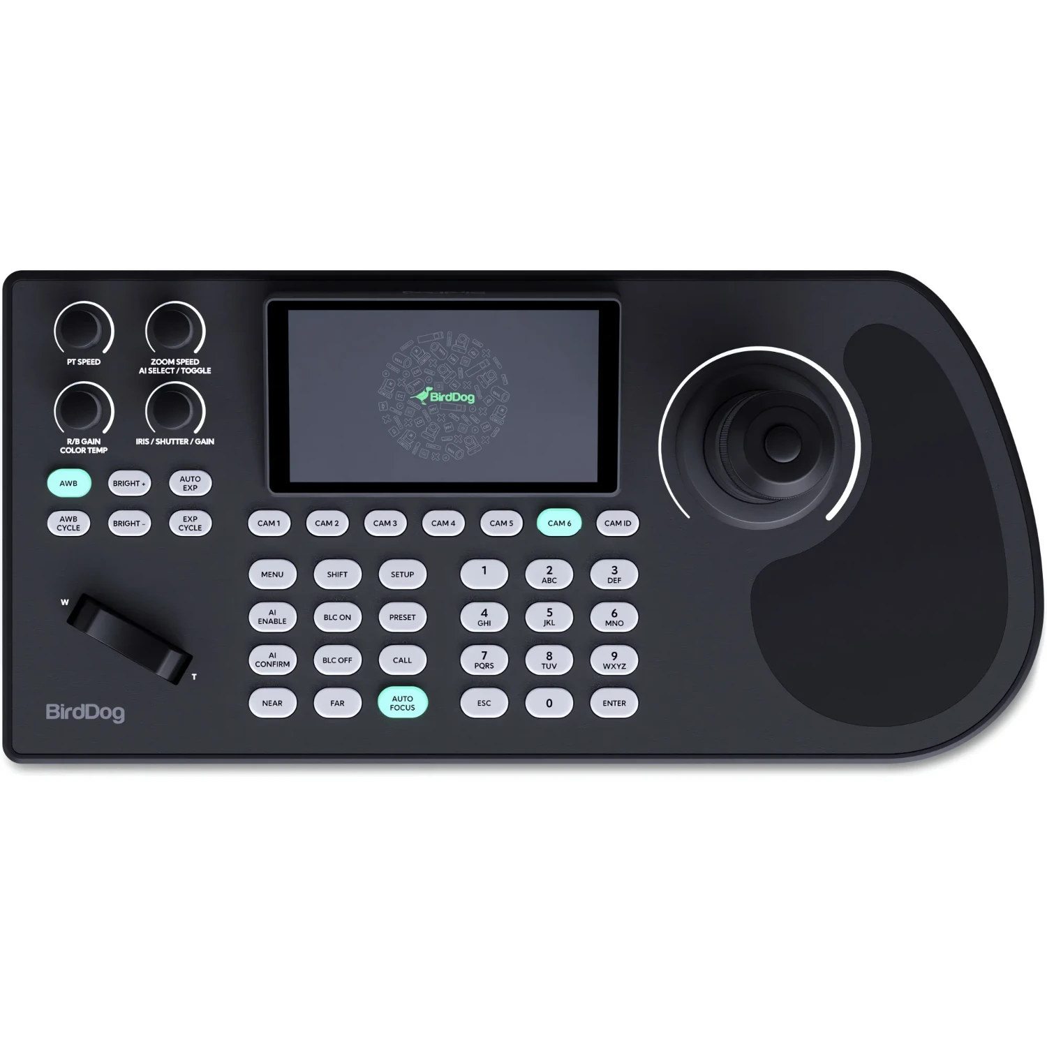 BirdDog KBD kontroler nudi operaterima PTZ kamera izdržljiv i ergonomski dizajn, veliki zaslon za rad s više kamera i izravan pristup ključnim funkcijama. Zahvaljujući ugrađeni prikaz broja i fizička taktilna povratna informacija Prilikom prebacivanja kamera, rukovanje je intuitivno i istovremeno ekološki prihvatljivo – izrađen je od plastike vezane u ocean i reciklirajućeg aluminija za zrakoplove. Povezivost NDI, VISCA, ONVIF, RS-232 i RS-422 osigurava maksimalnu svestranost bez obzira na korišteni protokol.