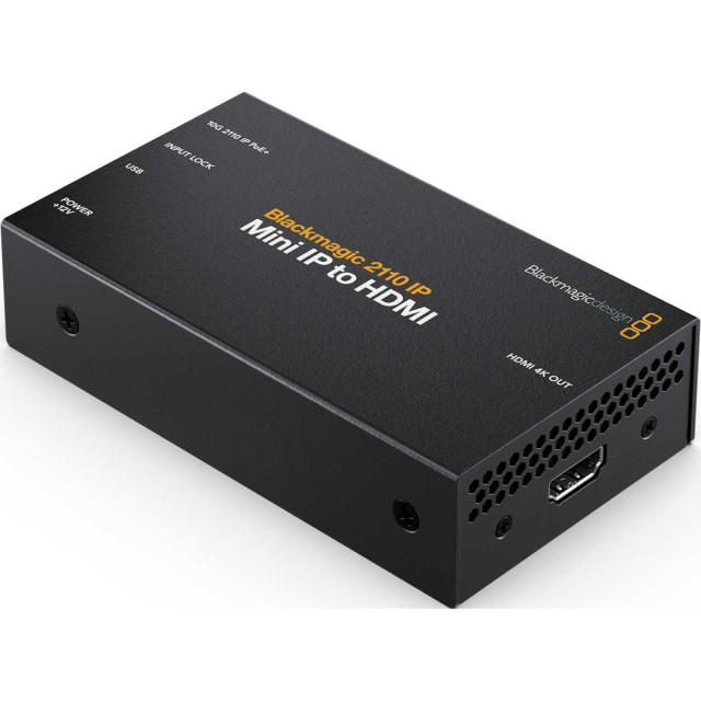 Blackmagic Design ima širok raspon SMPTE-2110 IP video proizvoda, uključujući pretvarače, video monitore, audio monitore pa čak i kamere. Osim toga, podržavaju Ultra HD korištenjem jeftinog 10G Etherneta. Većina modela pretvarača je dvosmjerna, tako da su fantastični za korištenje na fotoaparatima kada kupci trebaju dodatni povratni program. Modeli za montažu u stalak imaju elegantan dizajn s LCD zaslonom u boji za nadzor, izbornike i dijagnostiku. Svi modeli usklađeni su sa standardom SMPTE ST-2110 za IP video, uključujući PTP satove, pa čak i NMOS podršku, tako da korisnici mogu uspostaviti veze pomoću panela video rutera.