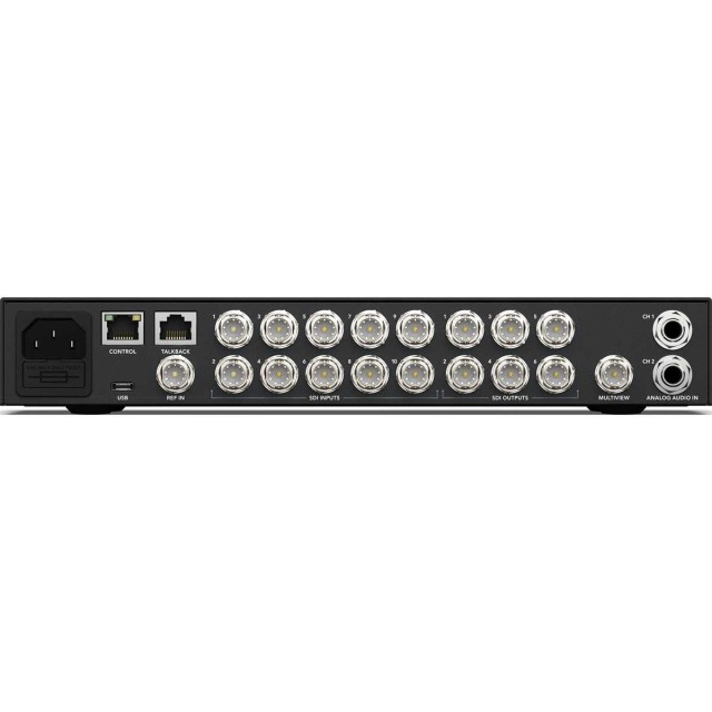 Kupci mogu spojiti opremu u HD ili Ultra HD televizijskim standardima uključujući 720p, 1080i,1080p i 2160p formate. SDI ulazi također će rukovati ugrađenim zvukom i miješati zvuk sa svih video ulaza. Izlazi programa uključuju povratni razgovor, zbroj i informacije o upravljanju kamerom. Tako kupci mogu spojiti bilo koji SDI izlaz preklopnika natrag na kameru za vraćanje programa, kontrolu kamere i povratnu komunikaciju.