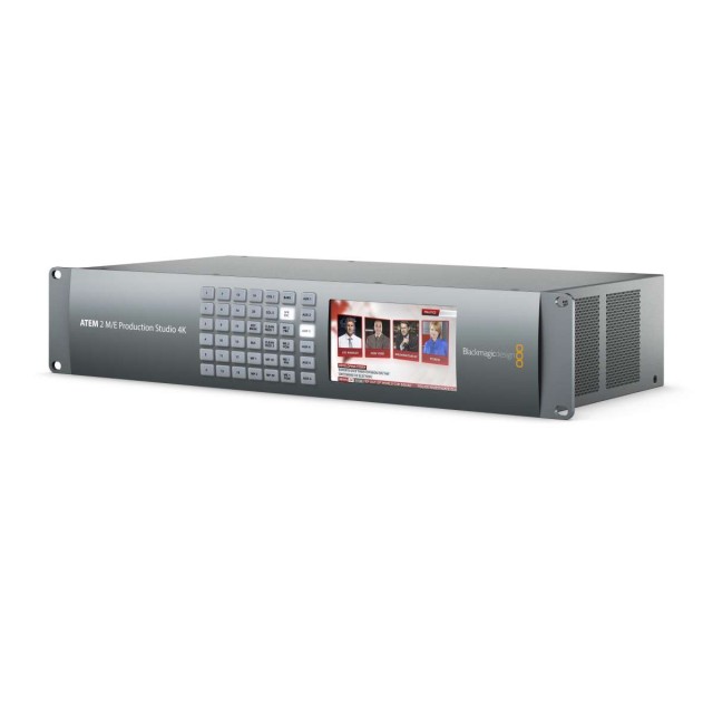 Proizvod ATEM 2 M/E Production Studio 4K smješten je u elegantno, izdržljivo kućište s aluminijskom prednjom pločom visine 2U. Na prednjoj ploči nalaze se gumbi koji omogućuju prebacivanje između šest neovisnih pomoćnih izlaza, a signal koji je prisutan na njima se zatim može pratiti na 5" LCD zaslonu koji se tamo nalazi. Prebacivanje pomoćnih izlaza namijenjeno je podešavanju i prebacivanju uređaja tijekom prijenosa uživo. Visoka izdržljivost hardvera nadopunjena je namjenskim, stabilnim operativnim sustavom. Za razliku od jeftinih režijskih troškova, ATEM 2 M/E Production Studio 4K koristi industrijski operativni sustav za maksimalnu radnu pouzdanost.