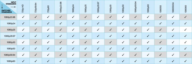 Zahvaljujući četiri neovisna HDMI ulaza, moguće je upravljati s do četiri video izvora (do 1080p60), uključujući profesionalne kamere. Sinkronizacija svih ulaza jamči kompatibilnost bez problema sa svim uobičajenim video izvorima, npr. kada radite s nepoznatom tehnologijom na novim radnim mjestima. Organizirani koncerti, društvena događanja, kazališne predstave i drugi programi mogu se jednostavno snimiti profesionalnim digitalnim filmskim kamerama!