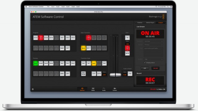 Besplatna aplikacija ATEM Software Control otključava skrivenu snagu ATEM Mini! Omogućuje potpunu konfiguraciju svih nadzemnih funkcija putem USB ili Ethernet sučelja; osim toga, mrežno sučelje omogućuje povezivanje više korisnika. Overhead postavke mogu se spremiti u XML datoteke, postoji i mogućnost daljinskog upravljanja HyperDeck disk snimačima preko Ethernet sučelja!