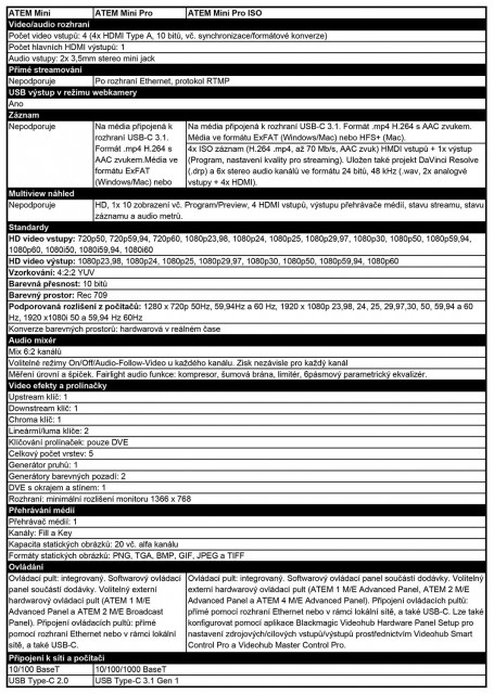 Model ATEM Mini Pro nudi sve mogućnosti popularnog modela ATEM Mini, ali donosi i dodatne značajke za snimanje, streaming i pregled videa! Model ATEM Mini Pro opremljen je novim hardverskim enkoderom za izravni streaming na YouTube Live, Facebook ili Twitch putem Ethernet sučelja. Osim toga, omogućuje snimanje H.264 videa izravno na USB pogone uključujući. podrška za kontinuirano/sekvencijalno snimanje na nekoliko povezanih diskova. Novost nove varijante također je multi-view pregled na HDMI izlazu za prikaz svih ulaza na jednom monitoru, kao i prikaz audio mjerača i streamed izlaza uključujući. informacije o statusu emitiranja.