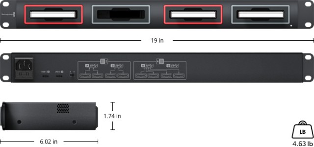 Profesionalna priključna stanica za USB disk s USB-C sučeljem. Elegantan uređaj za ugradnju u 19" ormariće s instrumentima olakšava rad s 2,5" SSD medijima iz kamera, videorekordera serije HyperDeck i računala.