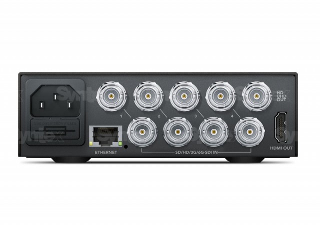 Blackmagic MultiView 4 novi je multiviewer za pregled četiri neovisna izvora signala sa SDI sučeljem na jednom monitoru. Korisnici mogu pratiti bilo koju kombinaciju SD, HD i Ultra HD formata s različitim brojem sličica u sekundi istovremeno. Izlaz se može vidjeti na običnim HD monitorima, ali i na novim Ultra HD monitorima s četiri puta većom rezolucijom! Daljinsko upravljanje putem Etherneta i softvera za Windows ili Mac OS X. Prikazano u konfiguraciji s dodatnom Teranex Mini Smart Panel prednjom pločom s kontrolama i zaslonom (nije uključen).