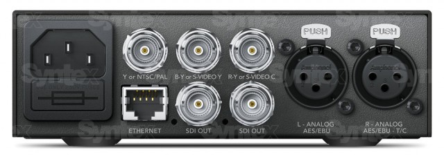 Teranex Mini proizvodi također su opremljeni standardnim XLR konektorima za balansirane audio linije, digitalnim AES/EBU sučeljem ili za povezivanje izvora vremenskog koda. Korisnici mogu koristiti standardno studijsko kabliranje s pouzdanom vrstom konektora koji ima sigurnosnu značajku protiv slučajnog povlačenja kabela. Audio strujni krugovi Teranex Mini pretvarača potpuno su redizajnirani za iznimno niske razine buke (više od -115 dBFS) i maksimalnu kvalitetu zvuka.