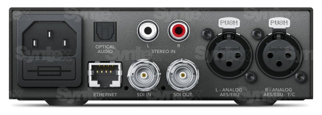 Teranex Mini proizvodi također su opremljeni standardnim XLR konektorima za balansirane audio linije, digitalnim AES/EBU sučeljem ili za povezivanje izvora vremenskog koda. Korisnici mogu koristiti standardno studijsko kabliranje s pouzdanom vrstom konektora koji ima sigurnosnu značajku protiv slučajnog povlačenja kabela. Audio strujni krugovi Teranex Mini pretvarača potpuno su redizajnirani za iznimno niske razine buke (više od -115 dBFS) i maksimalnu kvalitetu zvuka.