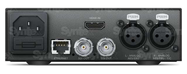 Teranex Mini proizvodi također su opremljeni standardnim XLR konektorima za balansirane audio linije, digitalnim AES/EBU sučeljem ili za povezivanje izvora vremenskog koda. Korisnici mogu koristiti standardno studijsko kabliranje s pouzdanom vrstom konektora koji ima sigurnosnu značajku protiv slučajnog povlačenja kabela. Audio strujni krugovi Teranex Mini pretvarača potpuno su redizajnirani za iznimno niske razine buke (više od -115 dBFS) i maksimalnu kvalitetu zvuka.