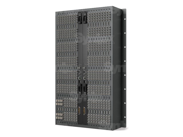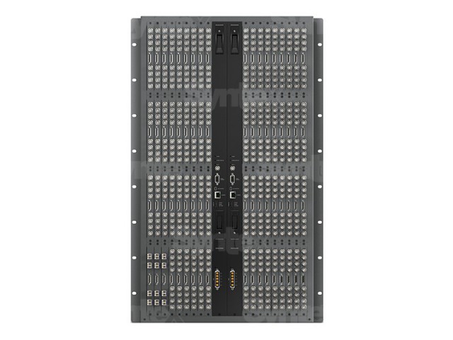 Rack okvir vam omogućuje dodavanje do 72 BNC SDI ili SDI sučelja s optičkim vlaknima plus jednu 72 x 72 ili dvije 288 x 288 crosspoint kartice i do dvije kartice za napajanje. Dodajte jednu križnu točku za pristupačnost ili dodajte dvostruku križnu točku i kartice za napajanje za potpunu redundanciju. Uključuje uklonjivu ladicu ventilatora i ventilatore.