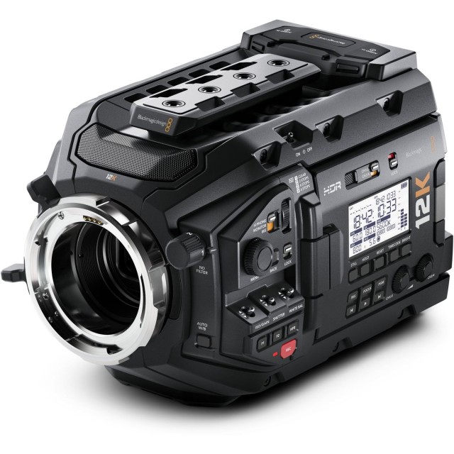 Blackmagic URSA Mini Pro 12K početni je snimak nove digitalne filmske revolucije zahvaljujući potpuno novom 12K Super 35 senzoru s dinamičkim rasponom od 14 f-brojeva, integriranom u popularno tijelo serije URSA Mini! Zahvaljujući kombinaciji senzora slike od 80 MP, novih algoritama za obradu slike i fleksibilnog Blackmagic RAW formata, snimanje 12K materijala postaje stvarnost. Nakon povećanja uzorkovanja na 8K i 4K rezoluciju, korisnici mogu dobiti fantastične snimke s beskompromisnim razinama detalja i vjernim tonovima kože, usporedivim s rezultatima profesionalnih kamera. Kamera omogućuje snimanje pri brzinama do 60 fps u 12K rezoluciji, 110 fps u 8K do 220 fps u 4K (Super 16 size cut-out). Model URSA Mini Pro 12K opremljen je PL nosačem, integriranim ND filterima, utorima za snimanje na CFast i SD/UHS-II medije, kao i snažnim USB-C sučeljem.