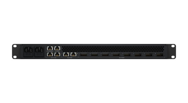 Nudi 8× 100G i 2× 10G Ethernet priključka, uz jednostavno usmjeravanje SMPTE-2110 putem prednje ploče. Nadalje, profesionalni sustav hlađenja od prednje do stražnje strane iznimno je tih. Za napredne sustave, ima dvije redundantne PTP Ethernet sinkronizacijske veze, zaseban NMOS kontrolni priključak i namjenski priključak za upravljanje.