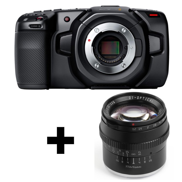Blackmagic Design Pocket Cinema Camera 4K i TTARTISAN APS-C 50MM F1.2 M43 paket objektiva