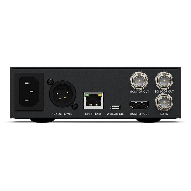 Zařízení obsahuje výstup jako USB webkamera, standardně konvertovaný vstup 12G-SDI a výstup pro monitoring streamu. Navíc můžete streamovat přes internet pomocí Ethernetu, nebo připojit telefon s 5G nebo 4G a využít mobilní data a přes nové streamovací funkce služby Blackmagic Cloud.