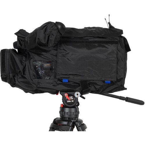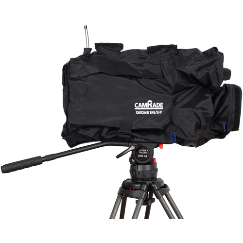 CamRade RainCover ENG/EFP vodootporni je zaštitni omot dizajniran za zaštitu profesionalnih kamkordera od kiše, prašine i oštrih vremenskih uvjeta . S tihom tkaninom , kopčama na kuku i omčom i zatvaračem , osigurava tihi rad dok održava lak pristup priključcima, kontrolama i baterijama . Uključuje uklonjivi nastavak za leće i dolazi s torbicom s patentnim zatvaračem otpornom na vremenske uvjete za pohranu.