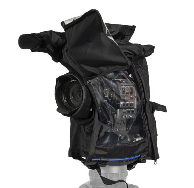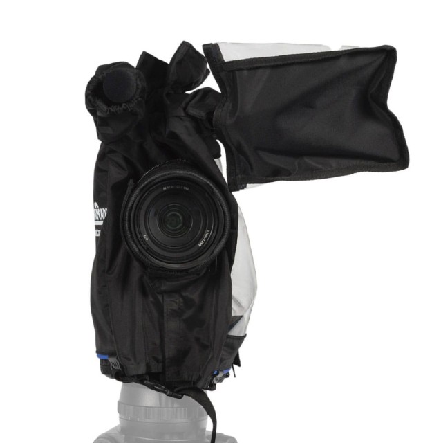 RainCover Small je pouzdana navlaka za kišu za male filmske i full-frame kamere. Dolazi s integriranim poklopcem za monitor u tražilu i brzo se pričvršćuje na kameru pomoću čičak trake i patentnih zatvarača.