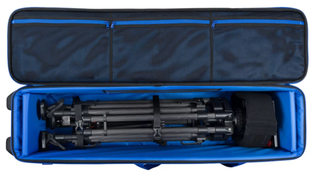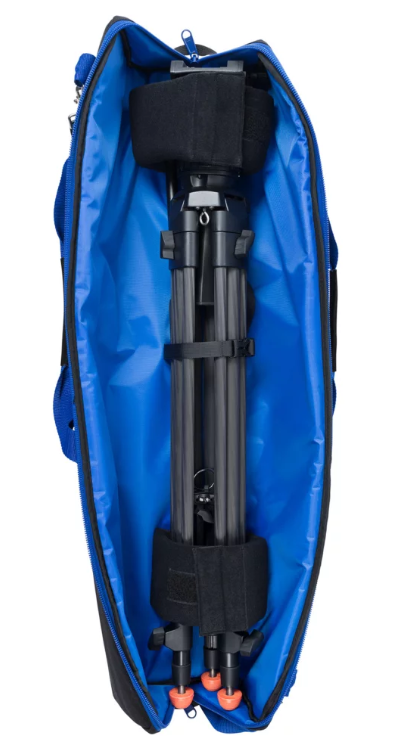 camRade tripodBag Lite nudi praktičan i lagan način za siguran i udoban prijevoz vašeg stativa i glave s tekućinom. Izrađen od izdržljivog crnog Cordura® materijala debljine 1000 dena s detaljima u jarko plavoj boji, torba pruža izvrsnu zaštitu, a istovremeno ostaje fleksibilna i jednostavna za rukovanje. Debela podstava po cijeloj torbi štiti vašu opremu od udaraca, dok unutarnji remeni i mekani velurni jastučići s čičak-trakama čvrsto drže stativ na mjestu tijekom prijevoza.