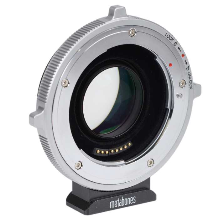 Metabones Canon EF na Fujifilm X-mount T CINE Speed Booster ULTRA 0.71x Mark II poboljšava vaše EF objektive na fotoaparatima s Fuji X-mountom, povećavajući maksimalnu otvorenost blende za 1 stopu i čineći vaše objektive 0,71x širim. Sa patentiranim optičkim dizajnom od 5 elemenata u 4 skupine i potpunom elektroničkom integracijom, podržava autofokus, stabilizaciju slike, EXIF podatke i glatku kontrolu otvora blende za performanse filmske kvalitete.