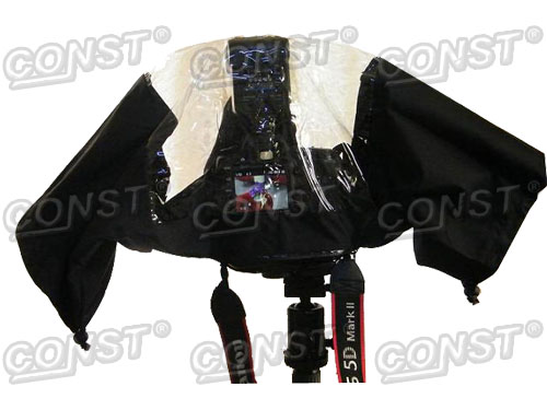 CONST RCA-03 kišna navlaka za kameru. Primjenjivi raspon: promjer sjenila je 12 cm. Duljina objektiva i sjenila objektiva je 48 cm. Ova navlaka za kišu može omogućiti držač i bljeskalicu čija visina nije veća od 13 cm.