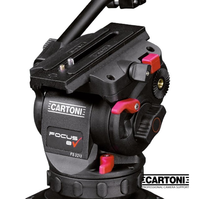Fluidna glava FOCUS 8 opremljena je kliznom pločom kamere kompatibilnom sa standardnim pločama Sachtler ACE i Manfrotto, libelom i orijentabilnom trakom za pomicanje. Kut nagiba je +/- 90° s savršenim odzivom u cijelom rasponu nagiba.