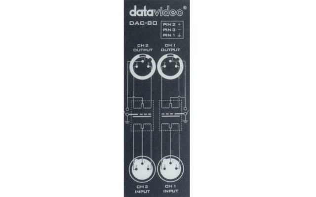 Datavideo DAC-80 uklanja šum iz audio linija uzrokovan petljama uzemljenja - samo ga spojite s ulaznim i izlaznim kabelima s XLR konektorima. DAC-80 uzrokuje minimalno slabljenje i izobličenje signala, a također je potpuno pasivan i ne zahtijeva napajanje za rad. DAC-80 je kompatibilan s dodatnim RMK-2 nosačem i dodatnim držačem za kuke i omče MB-5.