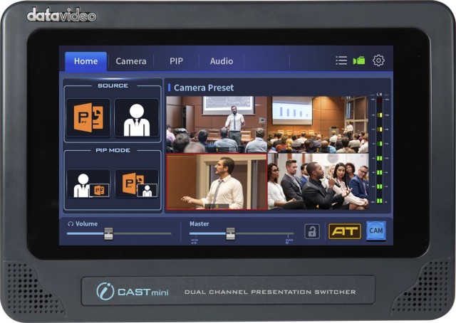 Datavideo iCAST Mini je dvokanalni, kompaktni prezentacijski 4K (do 2160p30) nadzemni uređaj pogodan za korporativnu obuku, školsku nastavu, konferencije itd. Za maksimalnu jednostavnost korištenja od strane jednog operatera, opremljen je integriranim zaslonom s dodirom kontrolu i prikladan je i za korisnike bez prethodnog iskustva s nadzemnim aplikacijama ili aplikacijama za video prijavu uživo.