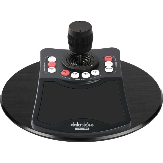 RMC-2P je jednostavan, svestran kontroler kamere dizajniran za upravljanje Datavideo PTZ kamerama putem DVIP-a. Pritiskom na gumb možete brzo pristupiti četirima unaprijed postavljenim položajima za svaku kameru, a možete koristiti joystick za jednostavno pomicanje, naginjanje i zumiranje kamere. Može se koristiti u kombinaciji s TPC-700 kontrolerom dodirne ploče ili iCast mini. U prodaji od 9/2024 .