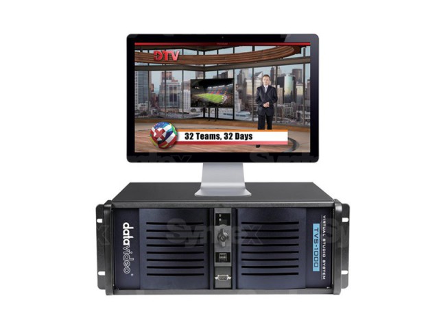 TVS-1000 je kompletan virtualni studijski sustav. Podržava do 6 slojeva, uključujući UV karte za umetanje opreme virtualnog studija, mogućnost primjene vlastite pozadine i druge funkcije za postavljanje izgleda virtualnog studija. Hardver je opremljen diskografom i sustavom za streaming videa, na primjer na server livestream.com!