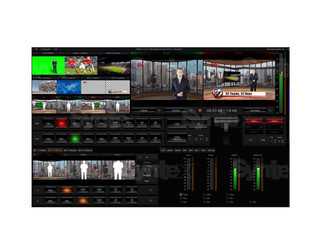 – Mogućnost prebacivanja unosa uživo i između četiri virtualne kamere, video datoteka ili fotografija.