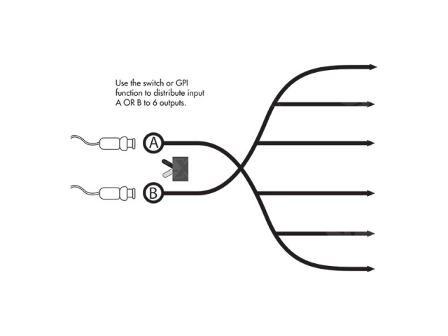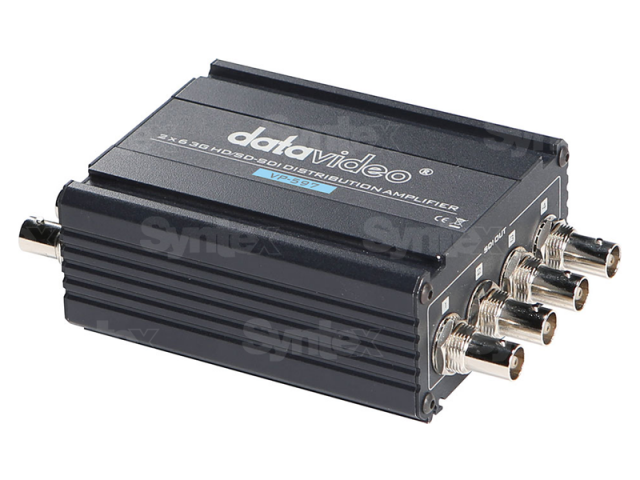 Datavideo VP-597 je SDI distributer sa 2 ulaza, 6 izlaza i A/B ulaznom sklopkom. Podržava 3G/HD/SD-SDI video signal s ugrađenim zvukom i ponovnim taktom za veće udaljenosti.