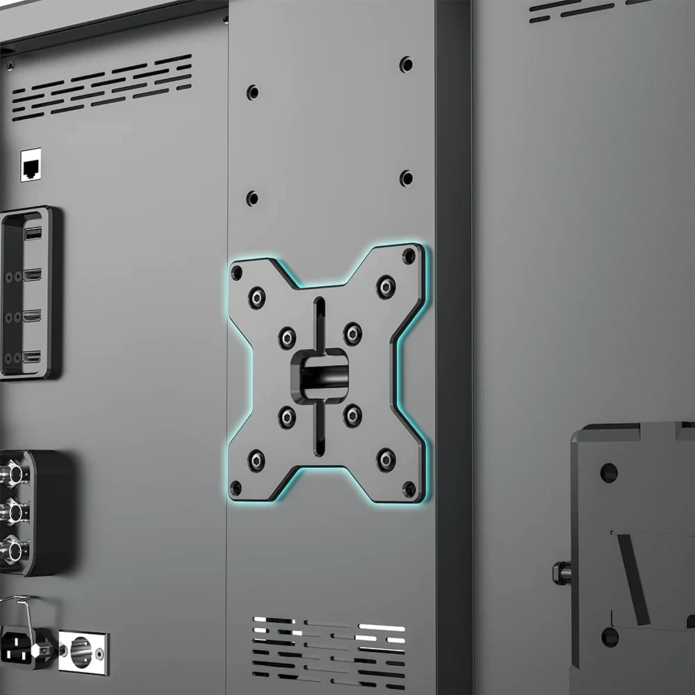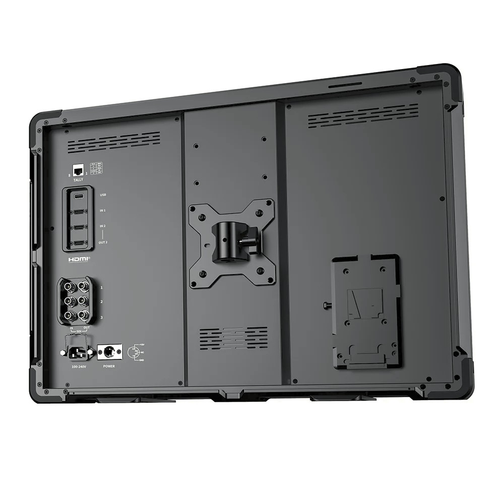 Izrađen za zahtjevna okruženja, D21 Pro ima kućište od kompozitnog materijala otporno na pritisak koje može izdržati opterećenje do 80 kg, ojačano vojnim štitnicima za kutove protiv sudara testiranim na padove s visine od 1,5 metara. Višestruke montažne točke od 1/4"-20 i 3/8" i kompatibilnost s VESA nosačem omogućuju besprijekornu integraciju sa stalcima za svjetlo, kolicima i studijskim opremama. Fleksibilnost napajanja osigurana je putem izmjeničnog napajanja, XLR DC ulaza ili V-mount podrške za baterije, što ga čini prilagodljivim studijskim, vanjskim ili mobilnim scenarijima snimanja. Prednje trobojno svjetlo za označavanje (crvena/zelena/plava) dodatno poboljšava njegovu prikladnost za okruženja za produkciju uživo i emitiranje.