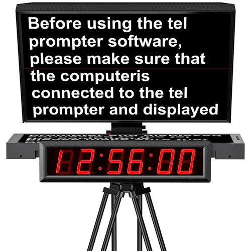 Nosač kamere s podesivom visinom omogućuje kompatibilnost s DSLR fotoaparatima, fotoaparatima bez zrcala, kamkorderima i filmskim kamerama, dok priložena sjenilo s vezicom smanjuje odsjaj i sprječava neželjene refleksije. Šifrirani softver za teleprompting podržava TXT i Word formate datoteka te omogućuje preciznu kontrolu veličine teksta, brzine pomicanja i orijentacije.
