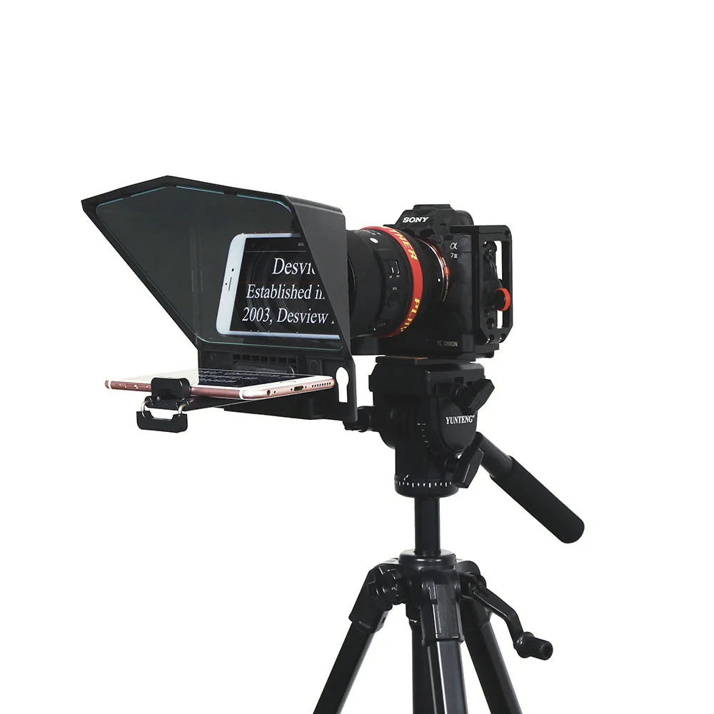 Teleprompter Desview T2 Broadcast umožňuje plynulé zobrazování scénáře před kamerou a poskytuje profesionální a uživatelsky přívětivé řešení pro vlogy, živé vysílání, online kurzy, rozhovory a studiové produkce. T2 je navržen pro tablety a smartphony s úhlopříčkou až 8 palců a využívá vysoce propustný dělič paprsku (až 97 %) k jasnému zobrazení posouvajícího se textu při zachování přesné kvality obrazu a barev a zabránění dvojitým odrazům. Jeho lichoběžníkový design zajišťuje širší pozorovací úhel, což usnadňuje čtení skriptů bez narušení vyrovnání kamery.